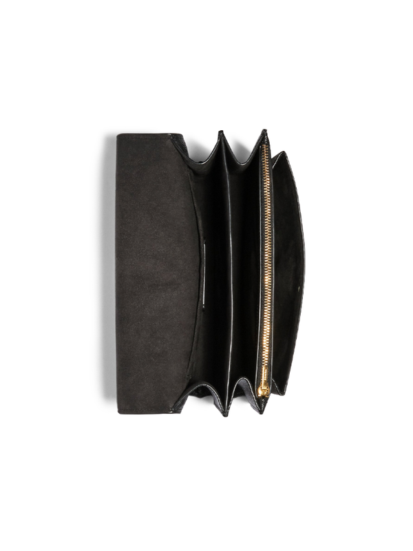- Strap with 56 cm drop doubles up for three ways to wear: short or long on the shoulder or crossbody style