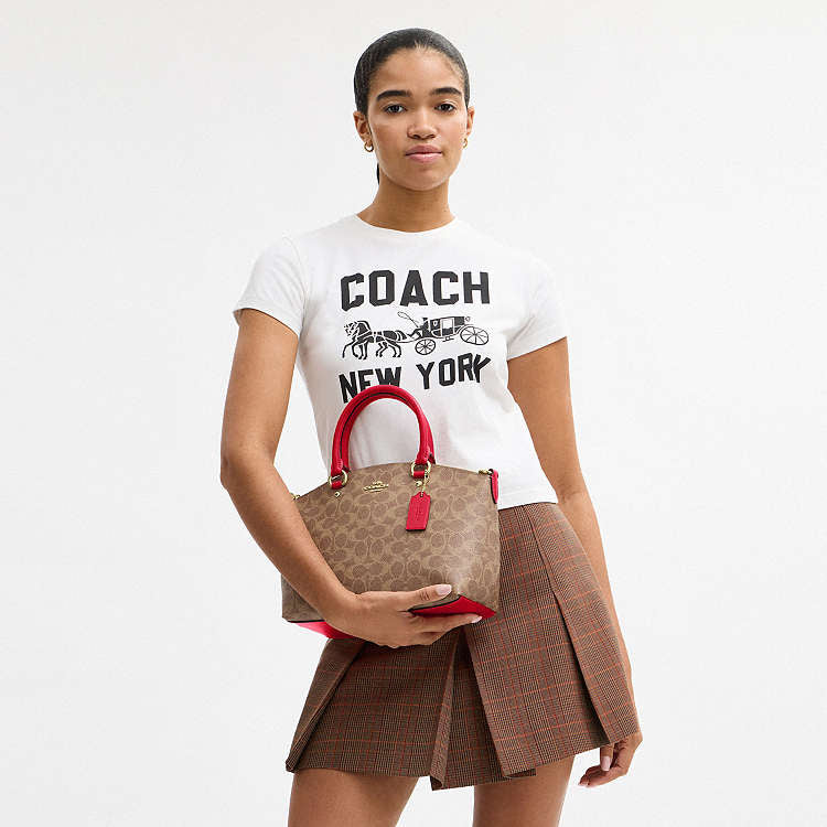 Coach Sadie Satchel Bag With Tan/Carnation