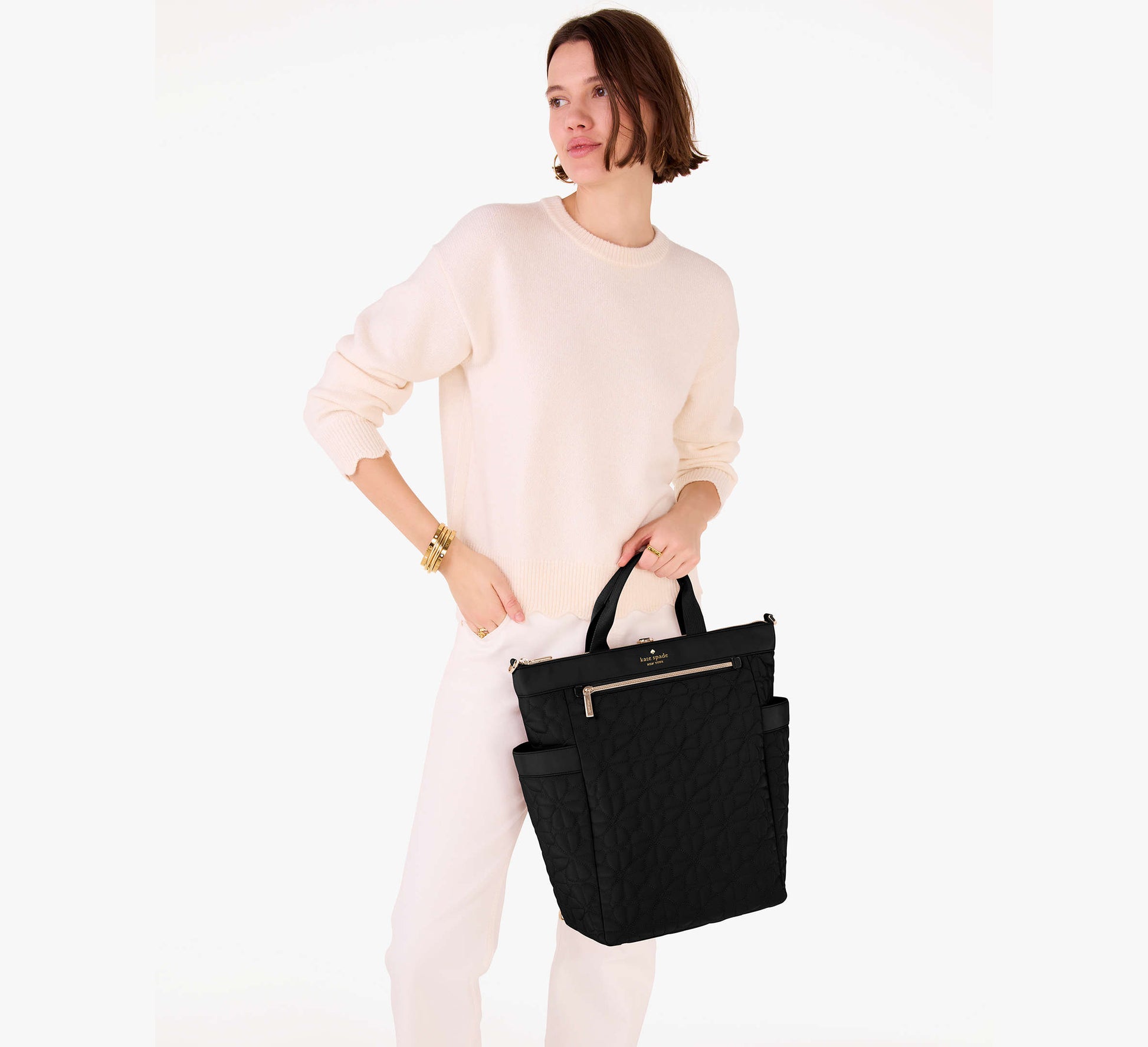 Kate Spade Spade Flower Quilted Fabric Convertible Backpack Black