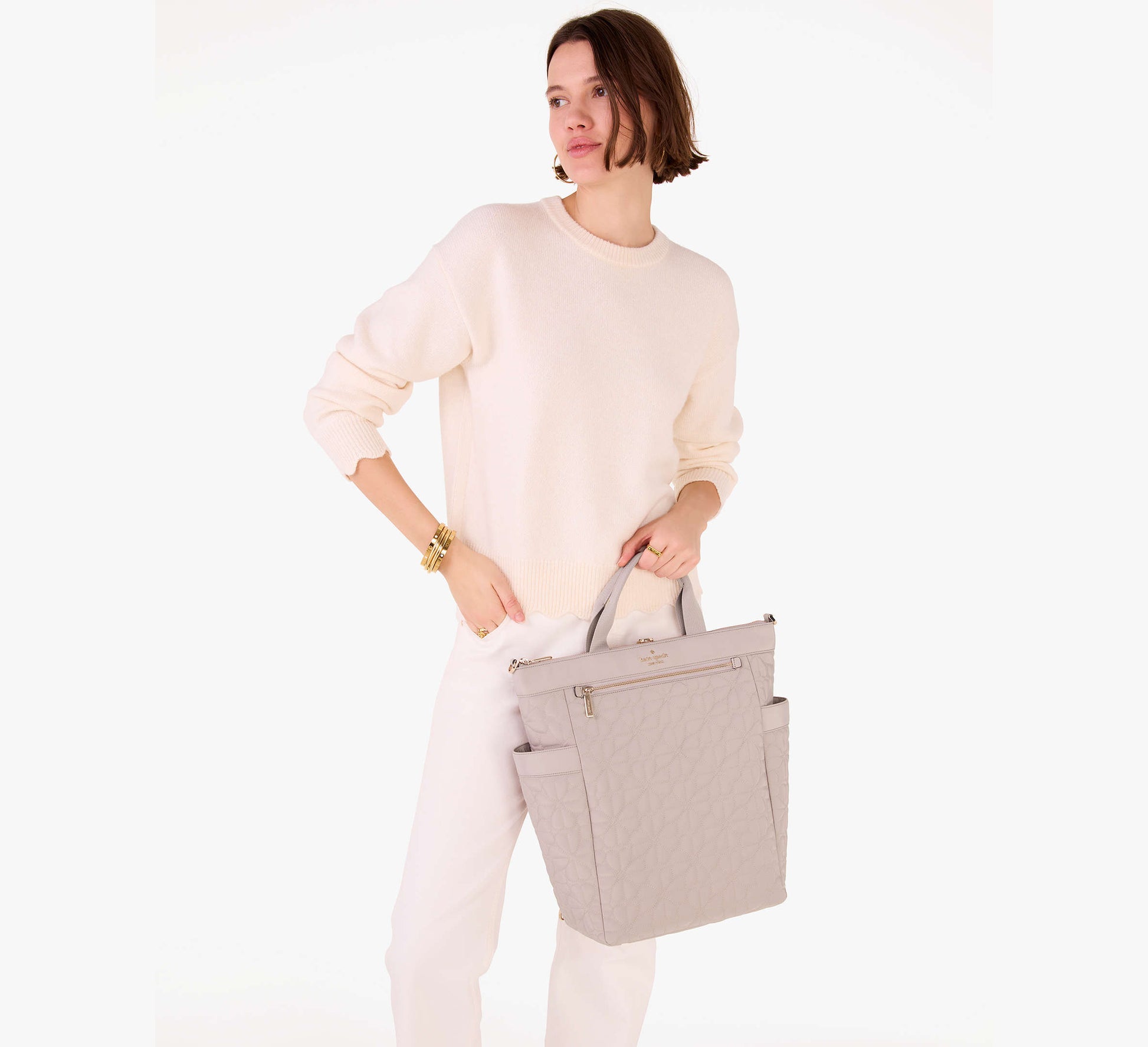 Kate Spade Spade Flower Quilted Fabric Convertible Backpack Cozy Grey